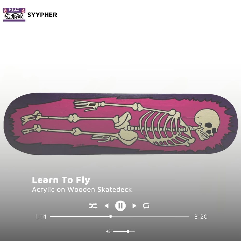 20cm x 71cm. Acrylic on Wooden Skateboard.