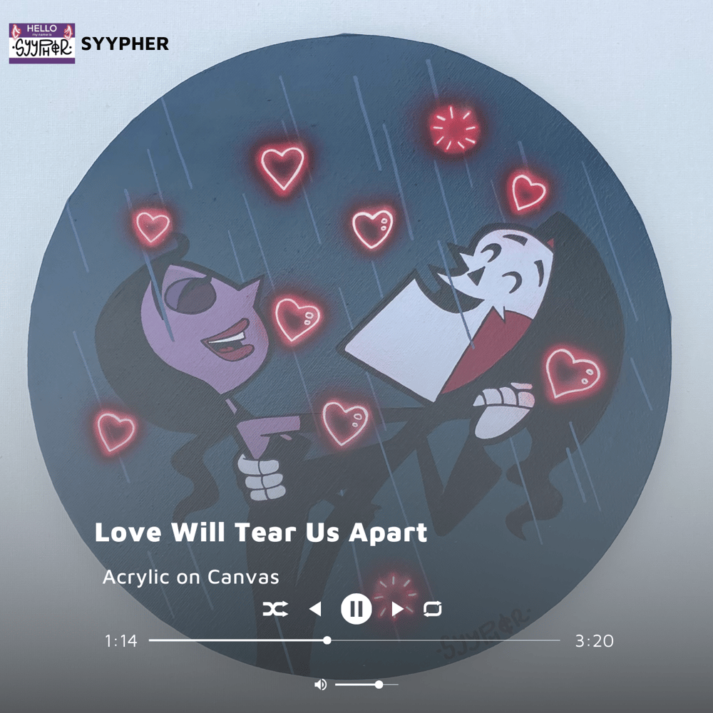 "Love Will Tear Us Apart" was originally painted and displayed as part of SYYPHERs debut solo show "Hello, My Name Is SYYPHER" at Off The Kerb Gallery, Collingwood, Naarm in May 2024.